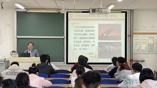 黄昊以《井冈山精神永存》为题,从井冈山精神的主要内涵及现实意义讲起,他讲到,井冈山是中国革命的摇篮,1927年大革命失败后,中国共产党在黑暗中苦苦摸索。有人迷茫,有人动摇,有人逃离,甚至有人背叛,“红旗到底打得多久”的疑问萦绕在一些人心中。在这样的危机关头,毛泽东率领秋收起义部队走上井冈山,开始了创建革命根据地、开展工农武装割据的斗争,逐步为中国革命探索出农村包围城市、武装夺取政权这样一条前人没有走过的正确道路。他强调,新时代青年要在新的征程上,把井冈山精神继承和发扬好,用共产党人的精神谱系滋养自己、激励自己,自觉做共产主义远大理想和中国特色社会主义共同理想的坚定信仰者和忠实实践者。