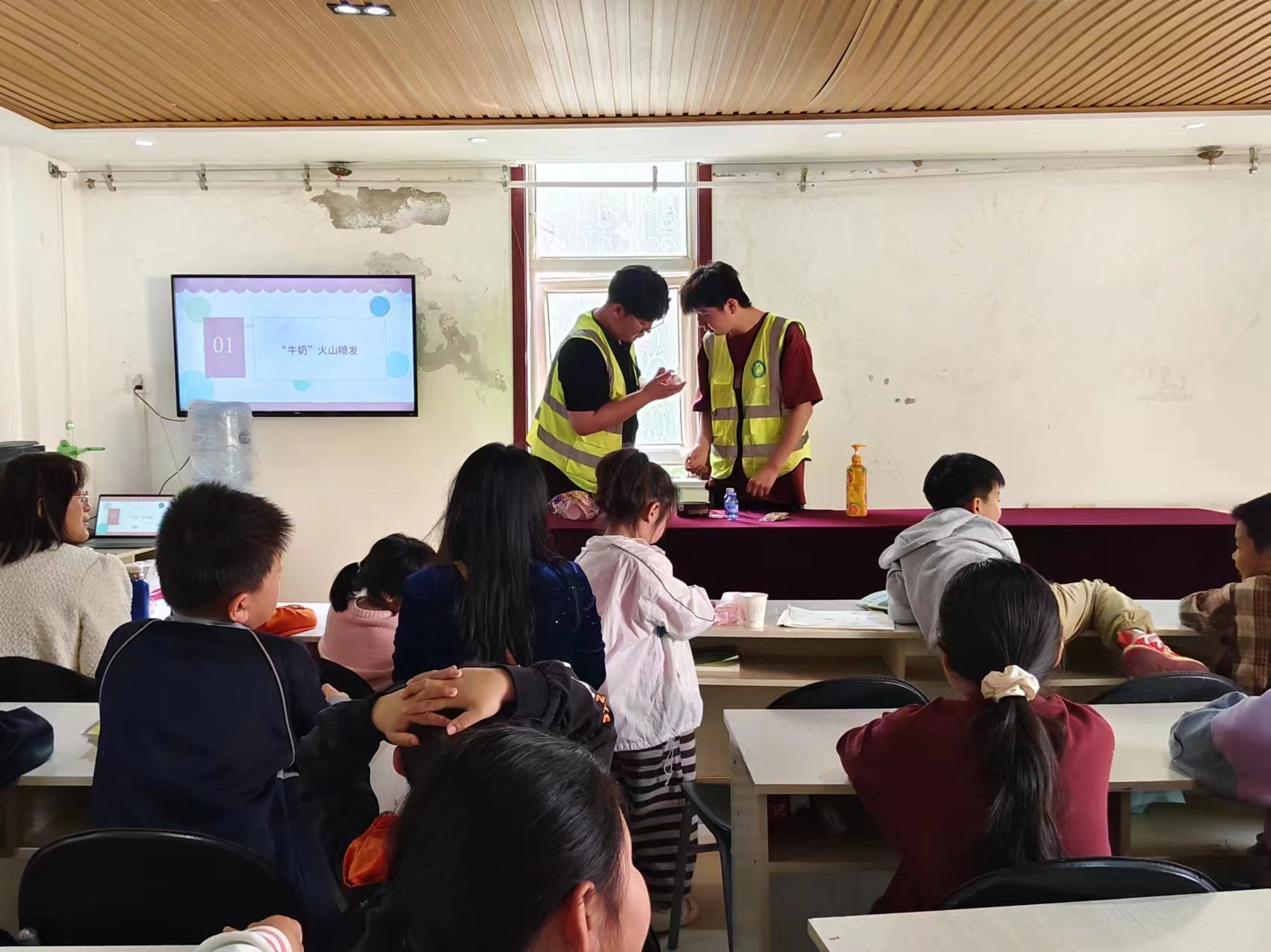 除了辅导孩子们的学习,志愿者们还为小朋友们准备了两个实验,它们分别是大象牙膏和法老之蛇。这两个实验不仅给小朋友们带来了视觉上的冲击,还培养了他们对科学的兴趣。