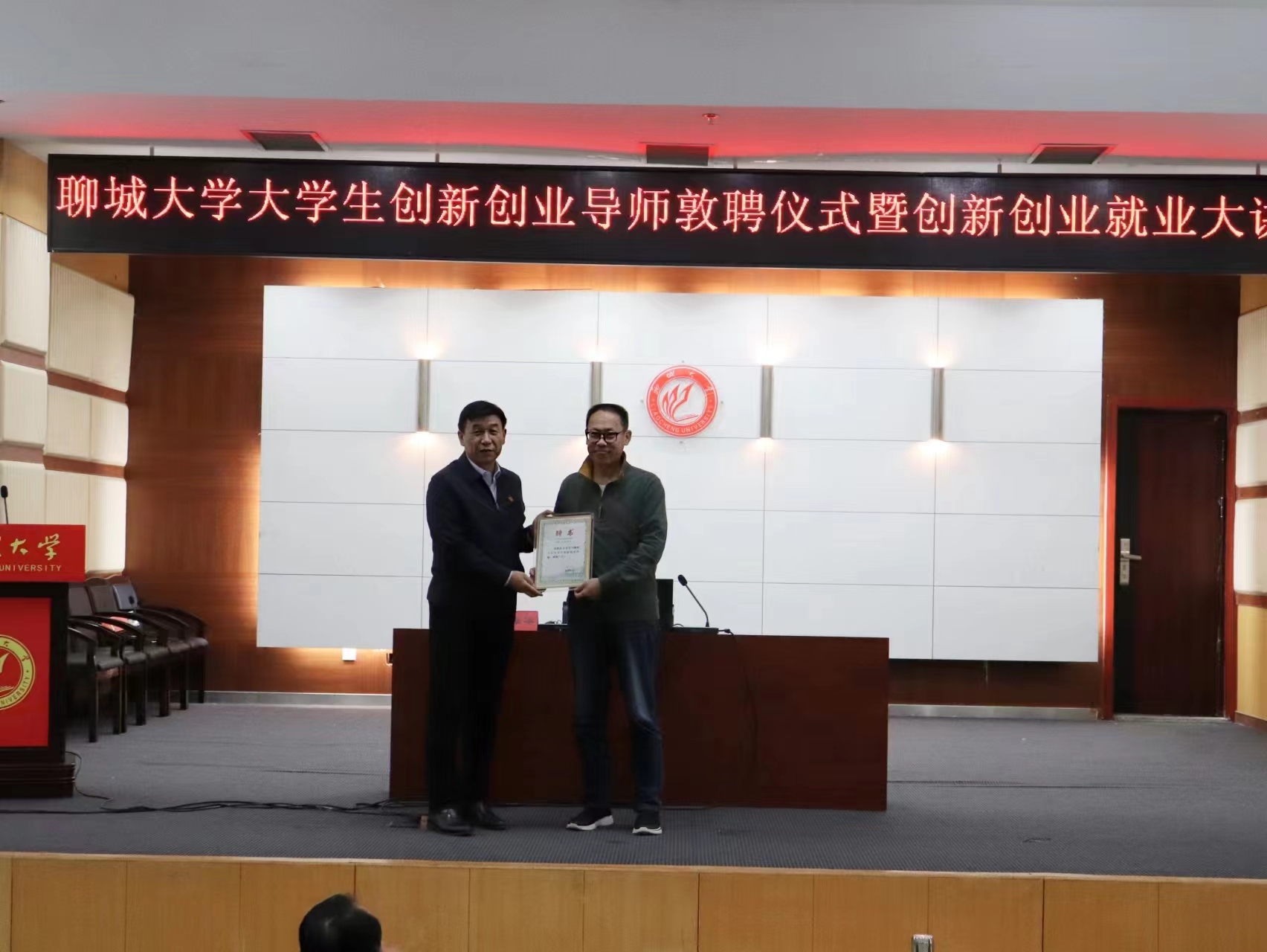 敦聘仪式上,赵明吉为王振华颁发了英国365公司大学生创新创业导师聘书。