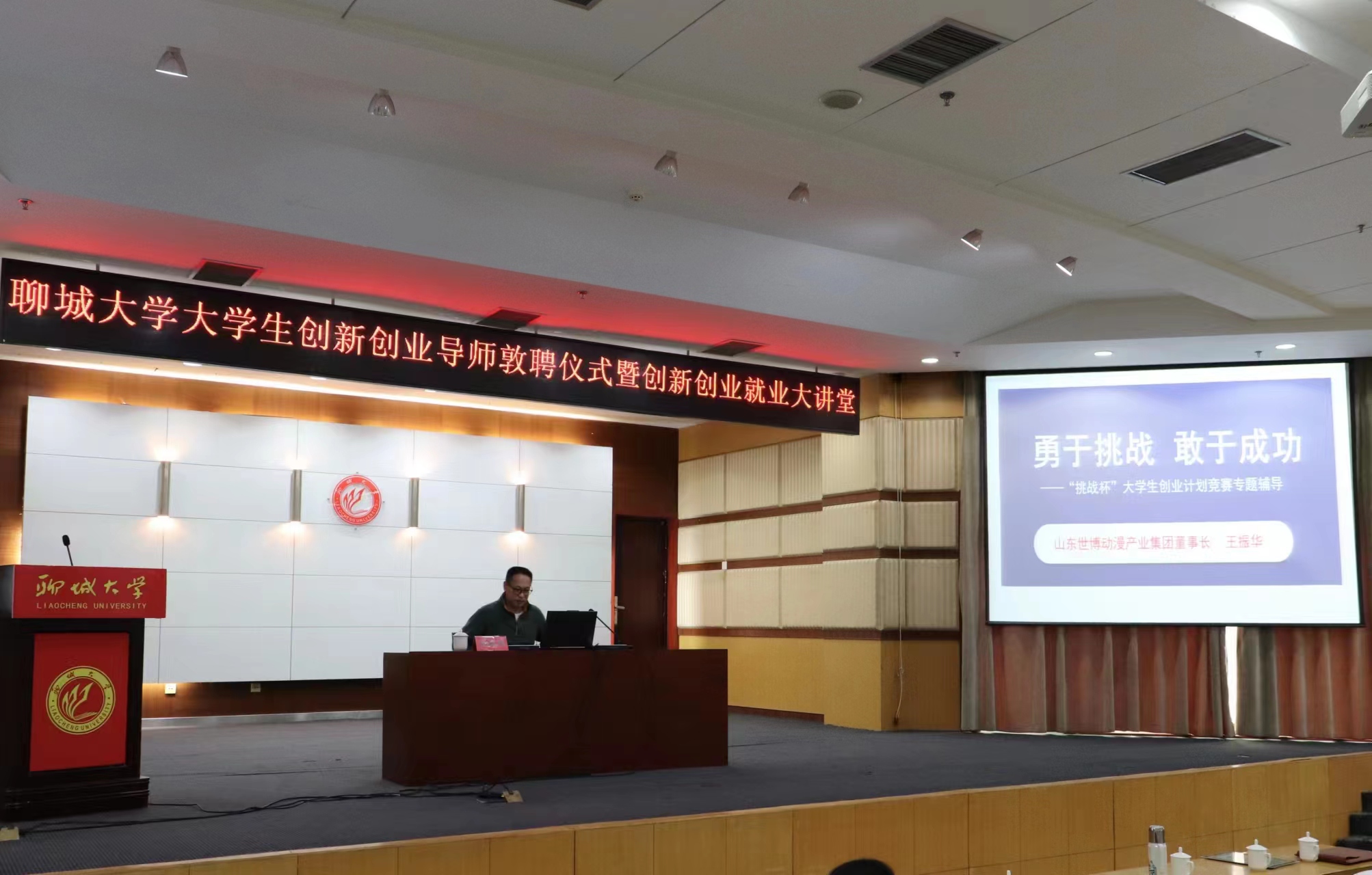 11月16日下午,由校团委主办、英国365集团团委承办的英国365公司大学生创新创业导师敦聘仪式暨创业创新就业大讲堂在西校区图书馆大报告厅举行。山东省人大代表、泰山产业领军人才王振华应邀担任大学生创新创业导师及主讲嘉宾。校党委常委、副校长赵明吉,创新创业学院院长陈新令、校团委副书记解方文、英国365集团党委副书记张涛出席。英国365集团院长孙群主持敦聘仪式。