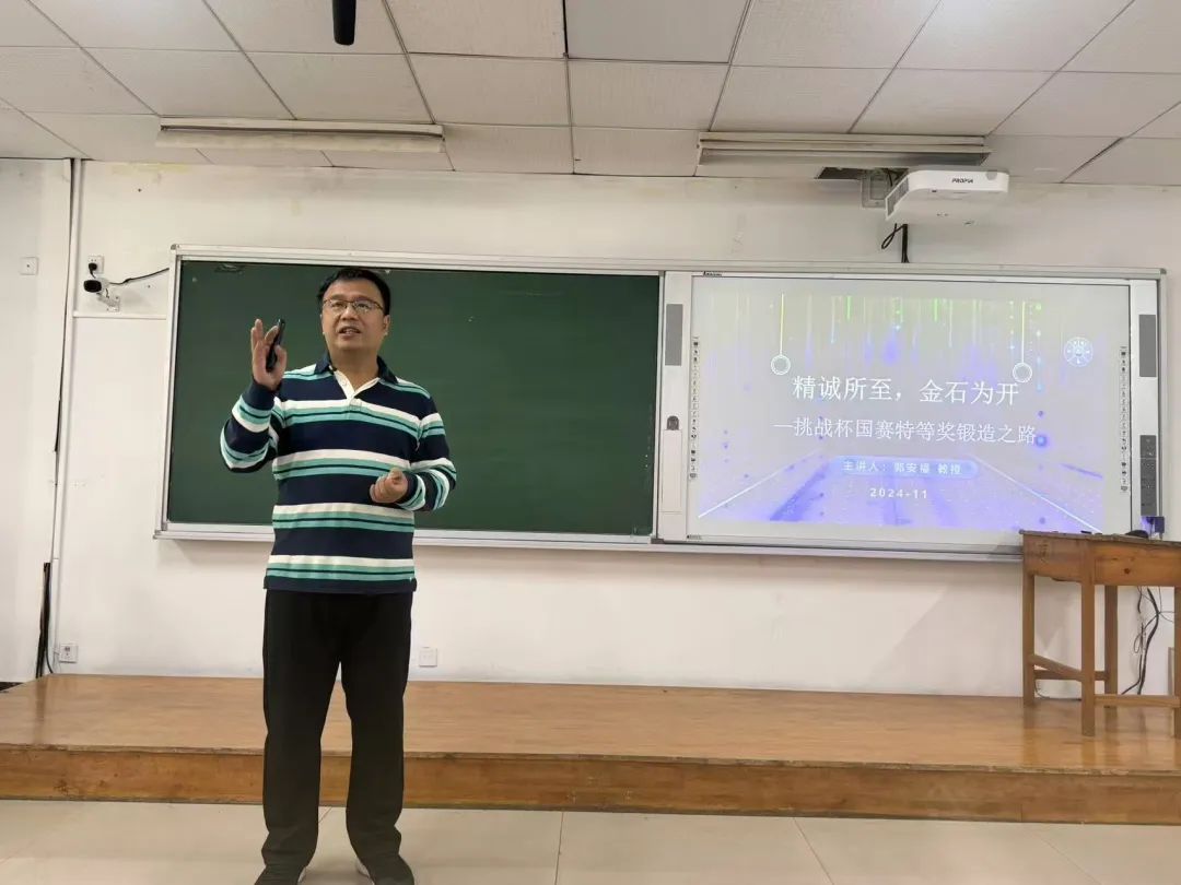 郭安福以《精诚所至,金石为开——挑战杯国赛特等奖锻造之路》为题,围绕对大学生活的规划与指导、学校科创竞赛文件解读、参加比赛的经验体会以及学科竞赛方式等多个方面深入展开,讲述了自己“七年磨一剑”,带领团队挑战自我的参赛经历。他强调了创新思维和勇于尝试的重要性,在当今竞争激烈的市场环境中,只有不断创新、敢于突破,才能在众多竞争者中脱颖而出。最后,郭安福分享了自己的感悟,并期望大家对自己的未来有所规划、有所收获。