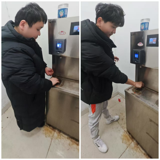 志愿者们分工明确,有条不紊地展开工作。有的志愿者仔细地擦拭直饮水机的机身,不放过任何一个角落,将长期积累的灰尘和污渍彻底清除;有的志愿者专注于检查设备的运行状况,查看线路是否安全、出水是否正常等,确保每一台直饮水机都能稳定运行;还有的志愿者负责清理周围的环境卫生,将地面的杂物清扫干净,保持饮水机区域整洁。