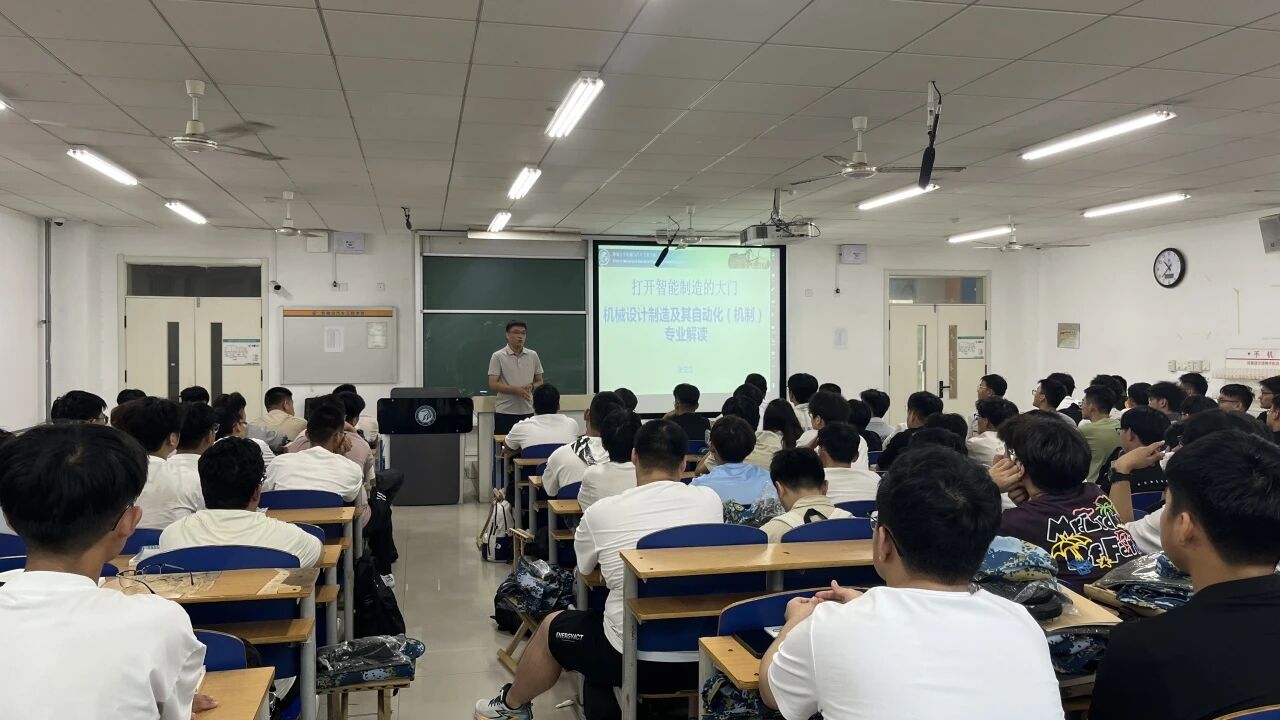 9月11日,系主任张兰江为机械设计制造及其自动化专业的新生进行专业导航,对本专业的课程设置、培养目标、就业前景等方面进行了详细解读,向新生们展示了专业的魅力和发展潜力。在互动提问环节中,同学们依据自身情况积极发问,老师们也以无比耐心的态度一一解答了大家的疑虑,为大家铺平了通向大学学习成功的道路。在老师们的鼓励下,同学们在心中逐渐勾画出了对自己未来几年大学生活的宏伟蓝图。
