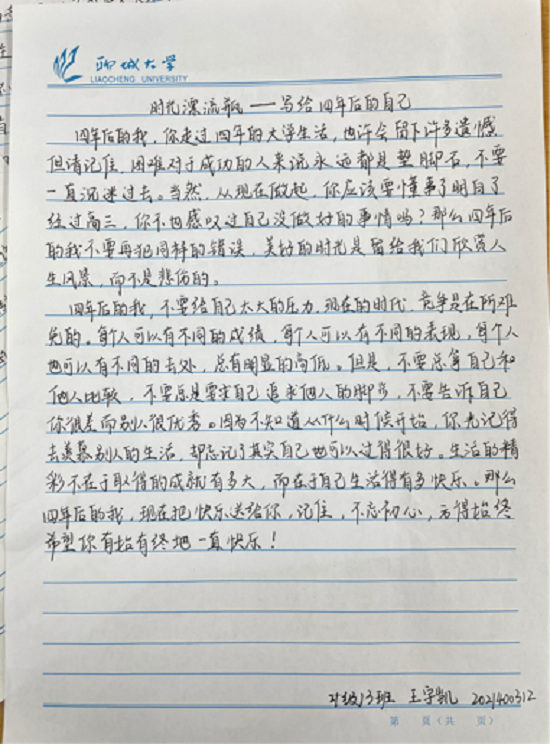 为了让同学们了解心理健康的重要性,懂得如何在大学生活中解决自己的困惑,提高自身的情绪调节能力,缓解同学们的心理压力,为自己制定正确的奋斗目标。11月5日晚,我院于线上举办了“时光漂流瓶—写给四年后的自己”活动。