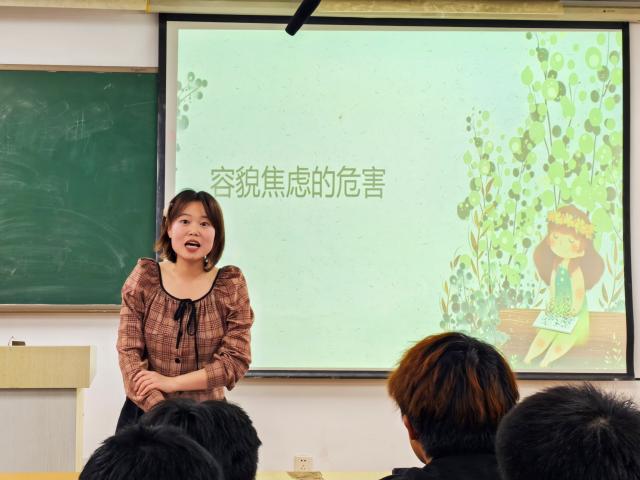 活动主要以容貌焦虑为主题。首先,王镭錡对容貌焦虑进行了定义,他指出这是一种普遍存在于学生群体中的心理状态,它涉及对自身外貌的过度关注和担忧。然后主讲人进一步分析了导致容貌焦虑的多种因素,其中包括自卑心理、普遍流行的单调单一审美等。在探讨审美焦虑的危害时,主讲人引用多个例子,指出长期的容貌焦虑可能导致抑郁、自卑、社交恐惧等问题,最终可能会影响到心理健康和学习。对于如何缓解容貌焦虑,主讲人提出了一系列策略,其中包括提升自我认知、提供情感支持与反馈、减少社会和媒体的负面影响以及提供心理辅导等。讲座中主讲人多次与同学们互动,大大提高了同学们的兴趣。