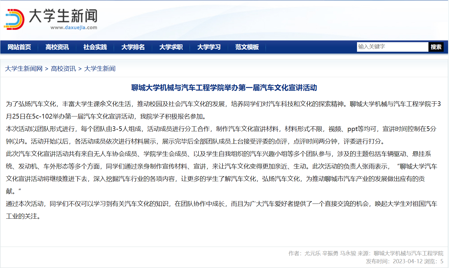 【大学生新闻网】报道英国365集团举办第一届汽车文化宣讲活动