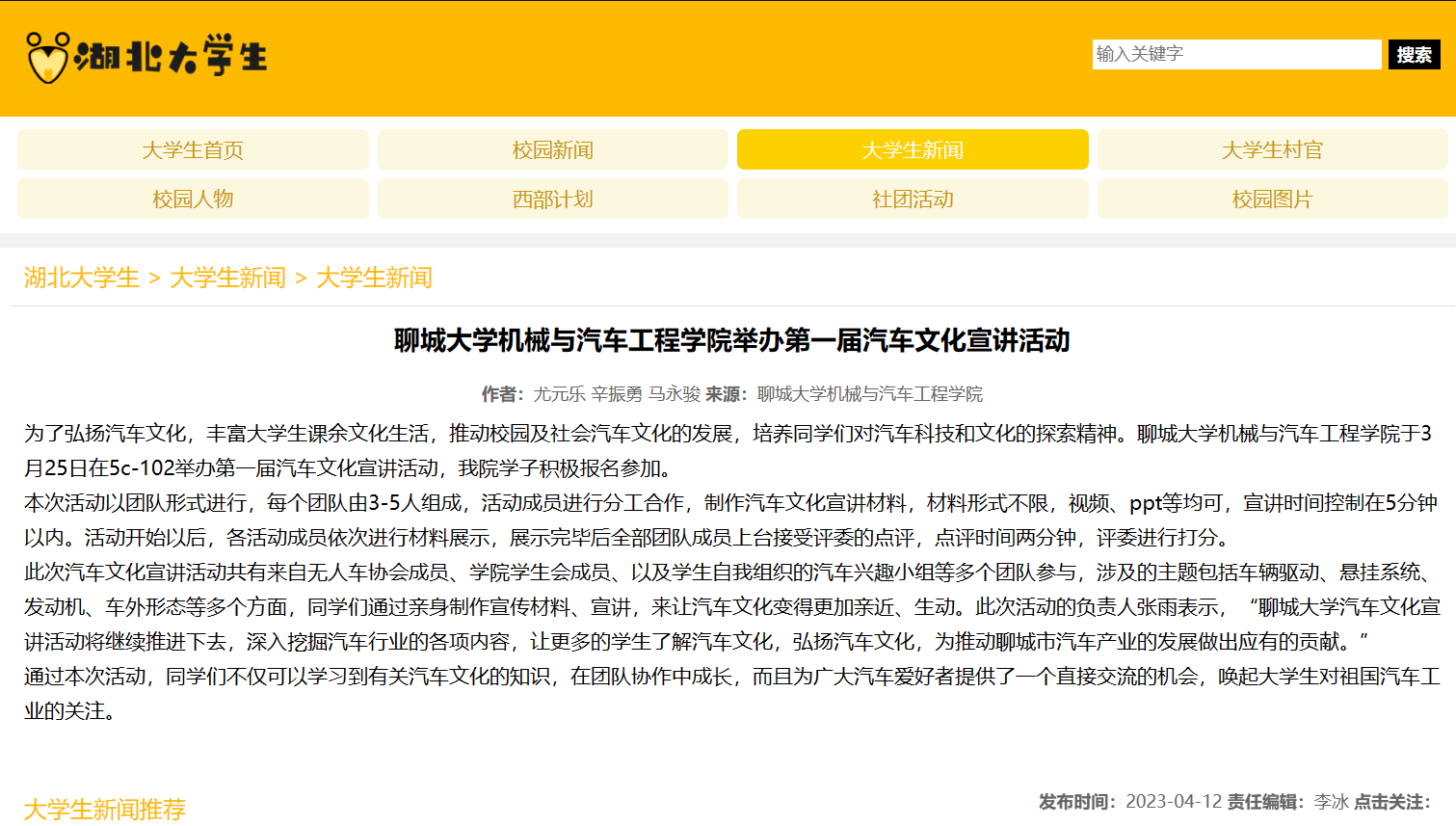 【湖北大学生网】报道英国365集团举办第一届汽车文化宣讲活动