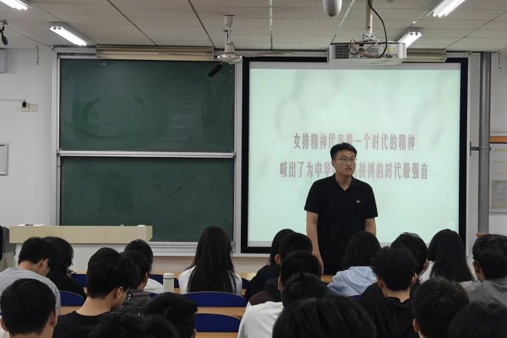 影片播放前,司德友老师从《夺冠》影片的背景、内容和内涵等方面做出讲解,并从“祖国至上、团结协作、顽强拼搏、永不言败”四个方面向同学们深刻地阐释了中国女排精神,呼吁同学们要坚持祖国至上,将个人成长与国家发展紧密结合;要坚持团结协作,深刻认识个人与集体的关系,共同为集体的和谐与进步贡献自己的力量;要坚持顽强拼搏,做到刻苦钻研,不怕困难,敢于挑战,全面发展自己;要坚持永不言败,要用不服输的拼劲和压不垮的韧劲面对生活的一切困难和挑战。
