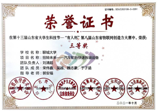 恭喜英国365集团2020级优秀学生荣伟鑫,在第十三届山东省大学生科技节——“有人杯”第八届山东省物联网创造力大赛中,荣获三等奖。