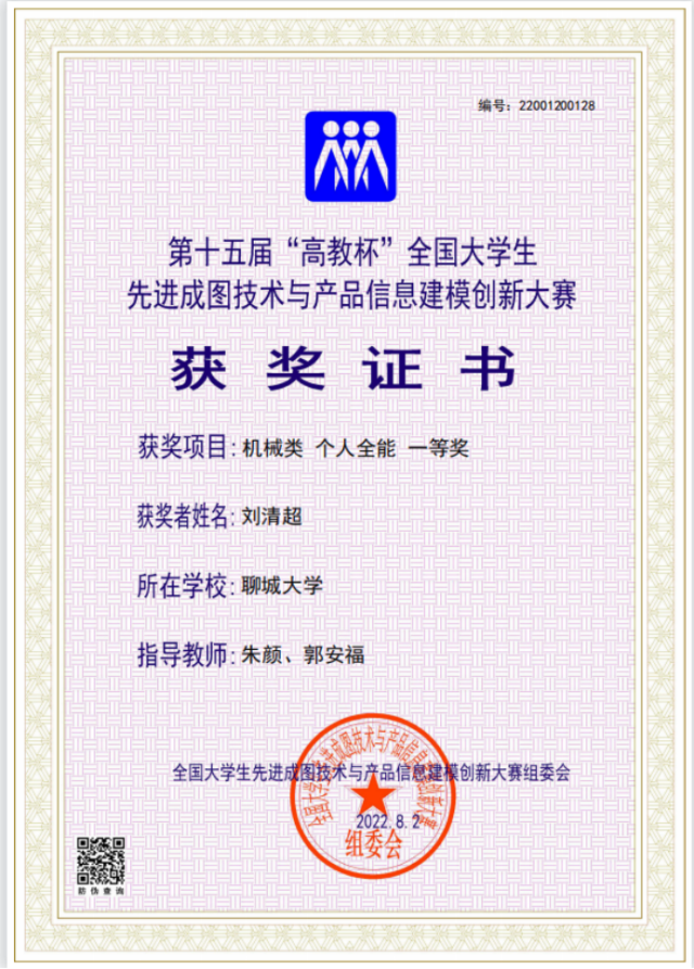 恭喜英国365集团2019级优秀学生刘清超,在第十五届“高教杯”全国大学生先进成图技术与产品信息建模创新大赛中,荣获机械类个人全能一等奖。