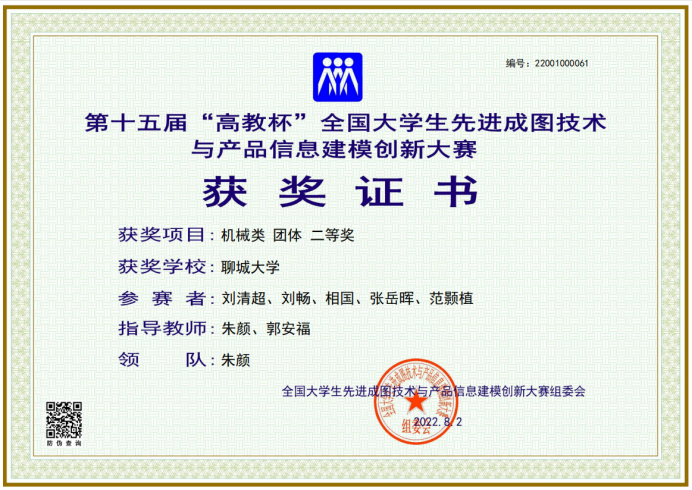 恭喜英国365集团2019级优秀学生刘清超,在第十五届“高教杯”全国大学生先进成图技术与产品信息建模创新大赛中,荣获机械类团体二等奖。