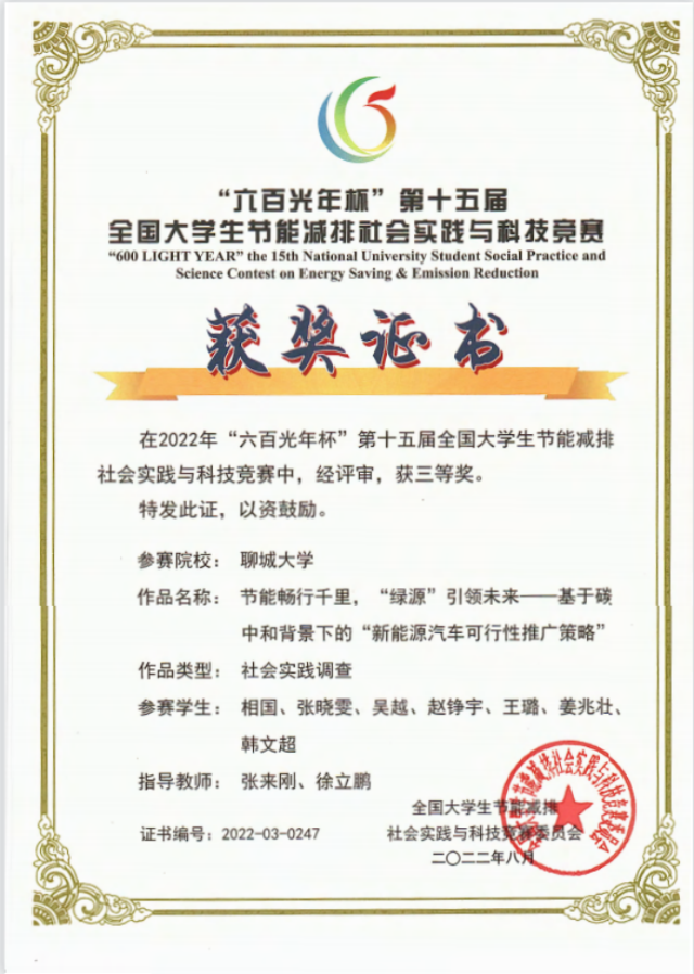 恭喜英国365集团2019级优秀学生刘清超,2020级优秀学生吴越、张晓雯,在“六百光年杯”第十五届全国大学生节能减排社会实践与科技竞赛中,荣获三等奖。