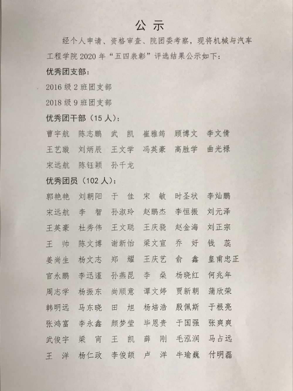 优秀团干部15人:曹宇航 陈志鹏 武凯 崔雅筠 顾博文 李文倩 王艺璇 刘炳辰 王文学 冯英豪 高胜学 曲光禄 宋远航 陈钰颖 孙千龙