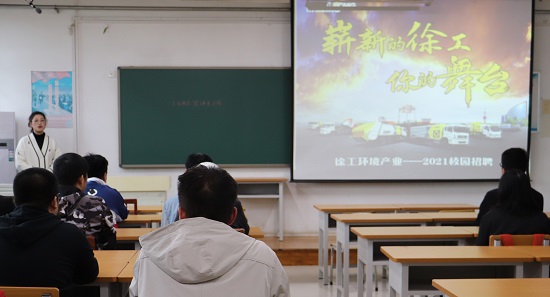 会议伊始,张琳用一段视频为大家详细介绍了总公司徐州工程机械集团,通过视频,同学们得知徐工集团目前在中国机械工程行业排名第一,从中也了解到徐工环境的创建背景、发展历程以及取得的各项成就。随即,张琳向大家展示公司的工作环境,优越的地理位置、方便的交通以及舒适的住宿环境。她还向大家介绍到,公司每年都会举办各种各样的活动来丰富员工的工作生活,使员工们充分展示自己,让员工们感受到公司的关怀,体会家的温暖,同学们纷纷被她的话语吸引,表示对本次招聘岗位充满期待。张琳介绍到,此次徐州环境技术有限公司招聘的岗位主要是营销岗位,她表示,营销岗位没有对特定专业的要求,反而机械专业对公司产品了解的更加透彻,可以很好地向客户介绍公司产品,同学们可以运用自己的专业知识,以“专业+管理”的模式进行培训。会议结束,同学们积极上交简历,并与招聘人员进行交流,等待接下来的面试。