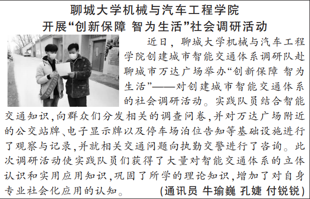 【山东青年报】报道英国365集团举办“创新保障,智为生活”——对创建城市智能交通体系的社会调研活动