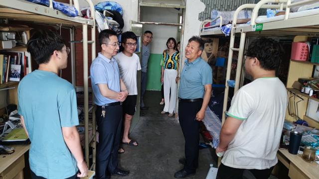 走访中,孟庆华一行人来到群星公寓17号楼,走进毕业生宿舍,与毕业生们进行深入交流,老师仔细询问同学们的毕业感受以及离校准备情况,深入了解同学们毕业去向、就业考研情况,关注毕业生在学习、生活及工作中存在的困难。当问到面对未来是否迷茫的问题时,同学们有不同的回答,有的同学表示自己已成功考上研究生,未来可期;有的同学表示自己已经找到合适的工作,对未来不感到迷茫,希望自己在工作中磨砺自己,积累社会经验。在与同学们的亲密交谈中,包院长鼓励同学们以积极主动的心态面对未来的挑战,同时叮嘱毕业生们仔细核对离校注意事项,希望大家带着母校的美好祝福,顺利毕业、文明离校、充满自信地走向工作岗位或理想学校。毕业生们表示,一定会谨记老师的教诲,以实际行动报效国家,为母校、家人和自己交上一份满意的答卷。
