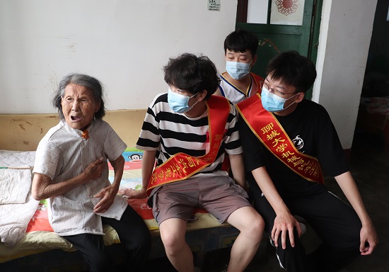 可能是第一次接触并不熟悉的陌生长辈,志愿者们一开始并不知道如何跟老人们自如地交流和相处,显得有些羞怯和手足无措。在与老人的交谈中,志愿者们适应了如何跟老人们的相处,变得不这么拘谨,开始敞开心扉,与老人们轻松愉快地交流起来。老人们拉着志愿者同学的手,向他们诉说着自己的家庭、自己年轻时候的美好回忆,丰富的生活经验和人生阅历以及在敬老院居住的点点滴滴,屋子内载笑载言,笑声响彻晴空。志愿者们还分成了几个小组,有帮助敬老院的老人们打扫室内、拖地、擦桌子的;有在室外,帮老人们给种满瓜果蔬菜的菜园子除草的;还有毛遂自荐帮助给老人们理发、剃胡子的。大家各有分工、各自其职,七月中旬正值盛夏,烈日当空、酷暑难耐,空气里都弥漫着燥热的气息,汗水在志愿者们的鬓间后背流淌,但大家没有叫苦叫累的,都干劲十足,干的是热火朝天,乐在其中。时间匆匆流逝、转眼间就到了分别的时候,老人们和志愿者们都有些恋恋不舍,老人们拉着志愿者们的手想让他们再多留一会儿,志愿者们纷纷向老人们承诺以后有机会还会回来看望他们,短短几个小时的相处,老人们和志愿者们结下了深厚的情谊。