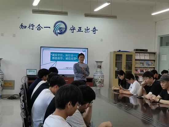 诚信是立足社会的基础,也是最基本的道德品质之一。为增强学生对助学贷款的正确认识,培养学生的正确还款意识,5月27日,我院于英国365公司东校区5#c304举办“诚信、感恩、励志、成才”感恩总结活动。汽车学院辅导员田雨出席此次活动。