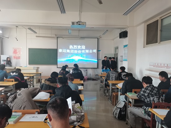 在宣讲会上,宣讲人首先通过播放宣传片的形式介绍了公司的概括、职业发展方向、人员需求以及选择该单位的理由。然后,为求职者详细解答公司发展状况,未来前景以及各岗位职业发展规划道路等问题。针对当下机械制造领域发展做了进一步的分析报告,以及项目专业技术的研发历程。豪迈集团秉承“致力于科学创新发展,持续改进公司制度,秉承工匠精神,追求精益求精,创造机遇,丰厚待遇”的方针发展。宣讲人和同学们在互动环节上进行了深入的交流,对同学们提出的问题一一作答。在招聘会上气氛良好,秩序井然,同学们积极与招聘人流人员交流,主动了解用人单位的情况。