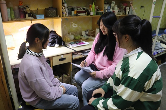 活动期间,朋辈辅导员一同前往群星17号宿舍,询问了新生在入学之后所遇到的生活及学习上的问题,是否能与同学舍友相处融洽等一些问题。并且向同学们介绍了心理朋辈辅导员的互助以及引领的作用,使得大家更能敞开心扉地与我们交流,同时我们朋辈辅导员用笔记的形式将谈心的内容记录了下来。从大家的回答来看,在学习中,存在课程过快、缺乏学习目标的情况,这让他们感觉到了学习焦虑。朋辈辅导员耐心地排忧解难,大家逐渐了解适合大学学习学习的方式等,并对以后的学习充满了信心与动力。