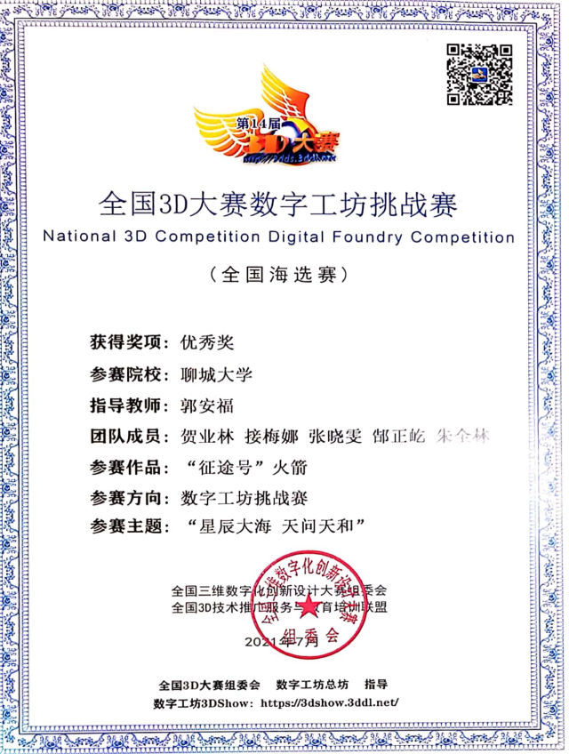 恭喜英国365集团2020级优秀学生朱全林在全国3D大赛数字工坊挑战赛中,荣获优秀奖。