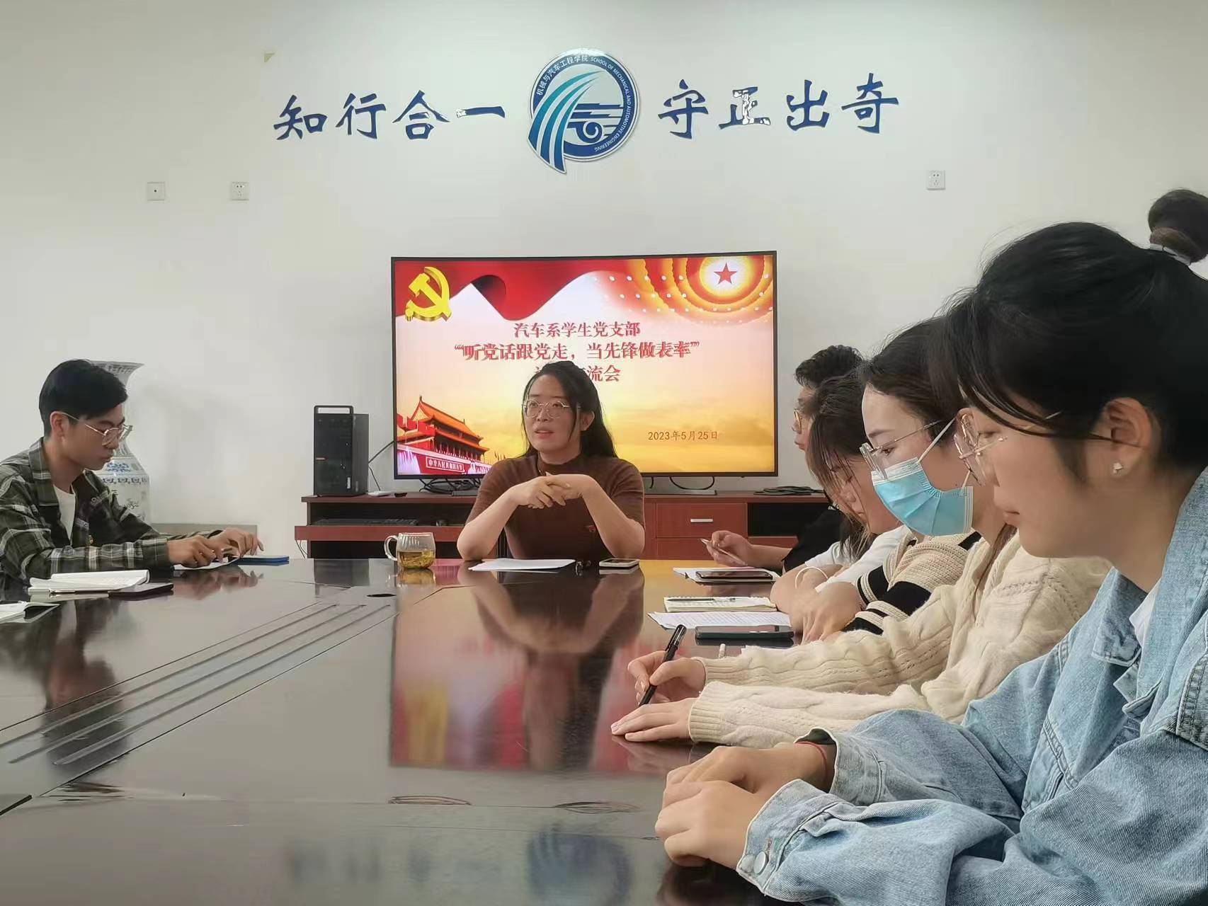 为营造学习宣传贯彻党的二十大精神、奋进新时代新征程的浓厚氛围,根据上级党委关于主题教育实践活动的相关要求,5月25日下午,我院汽车系学生党支部组织开展“听党话跟党走,当先锋做表率”讨论交流会,汽车系党支部全体党员参加了本次交流讨论,结合学习、工作和生活实践依次进行发言讨论。