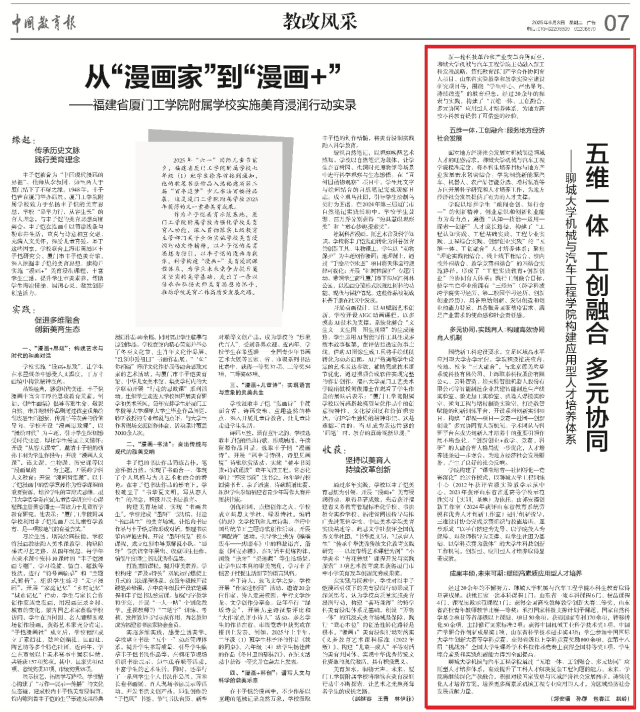 6月3日,《中国教育报》以《“五维一体、工创融合、多元协同”-英国365集团构建应用型人才培养体系》为题,报道我院在构建并实践培养高素质机械工程专业应用型人才培养新体系方面的经验做法。