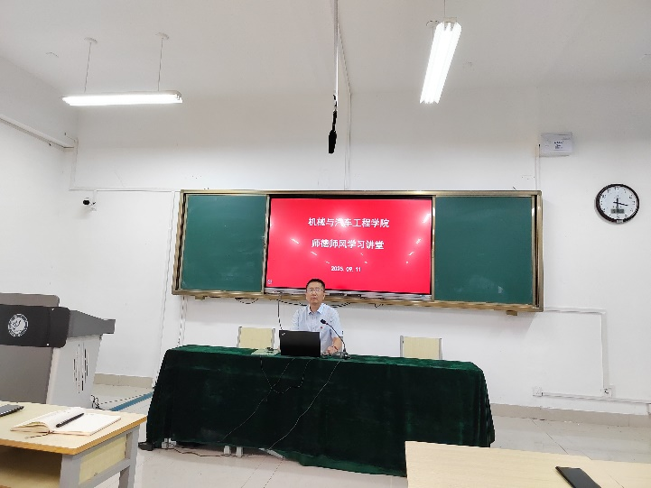 9月11日下午,我院在东校区5号教学楼C106多功能室开展师德师风学习讲堂活动,学院党委书记包春江主持,全体教职工参加。
