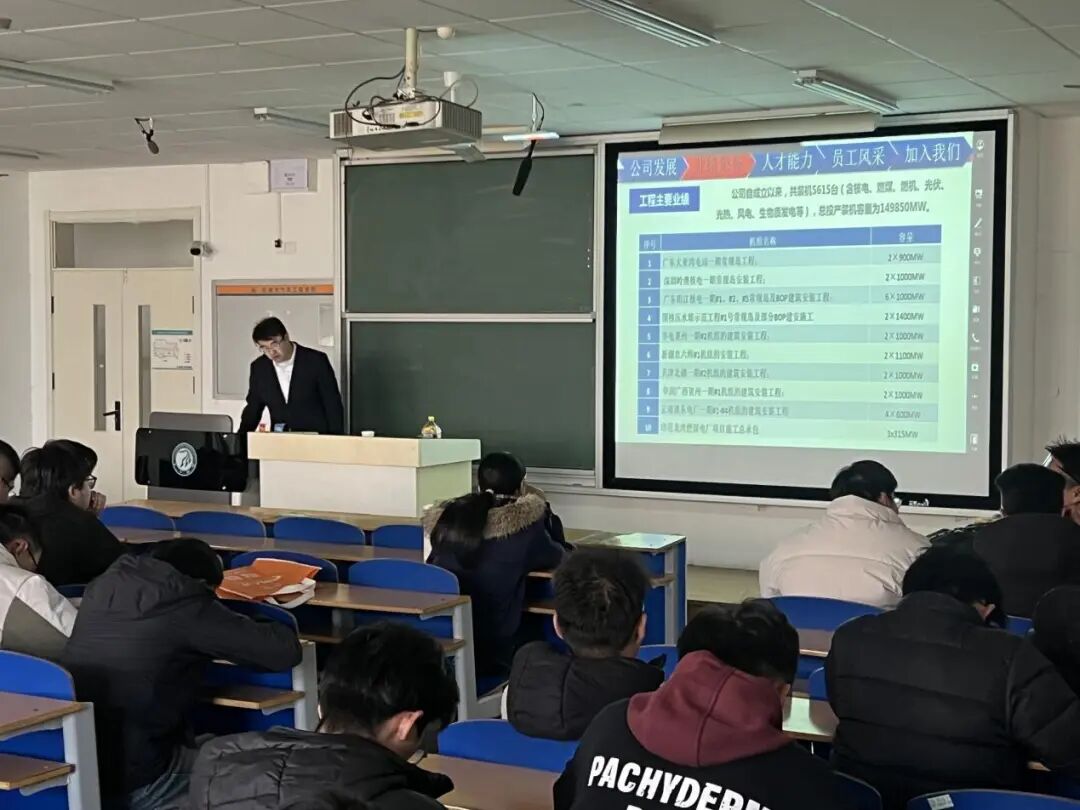 宣讲现场,企业相关负责人围绕集团发展概况、核心业务板块、项目建设成果等方面进行全面介绍,详细讲解了行业发展前景与人才需求,让同学们对能源基建领域有了更加直观、深入的认识。